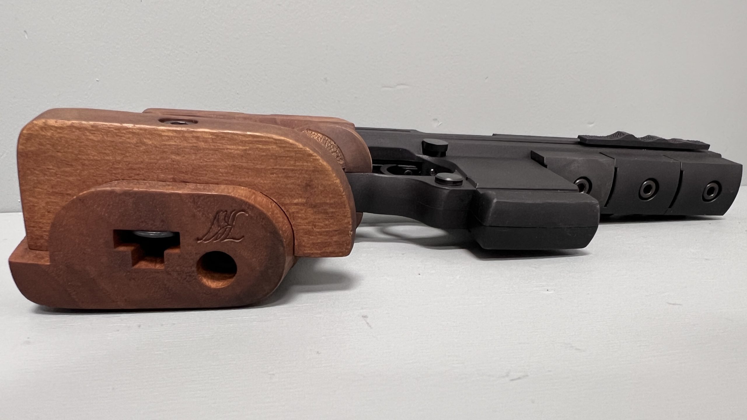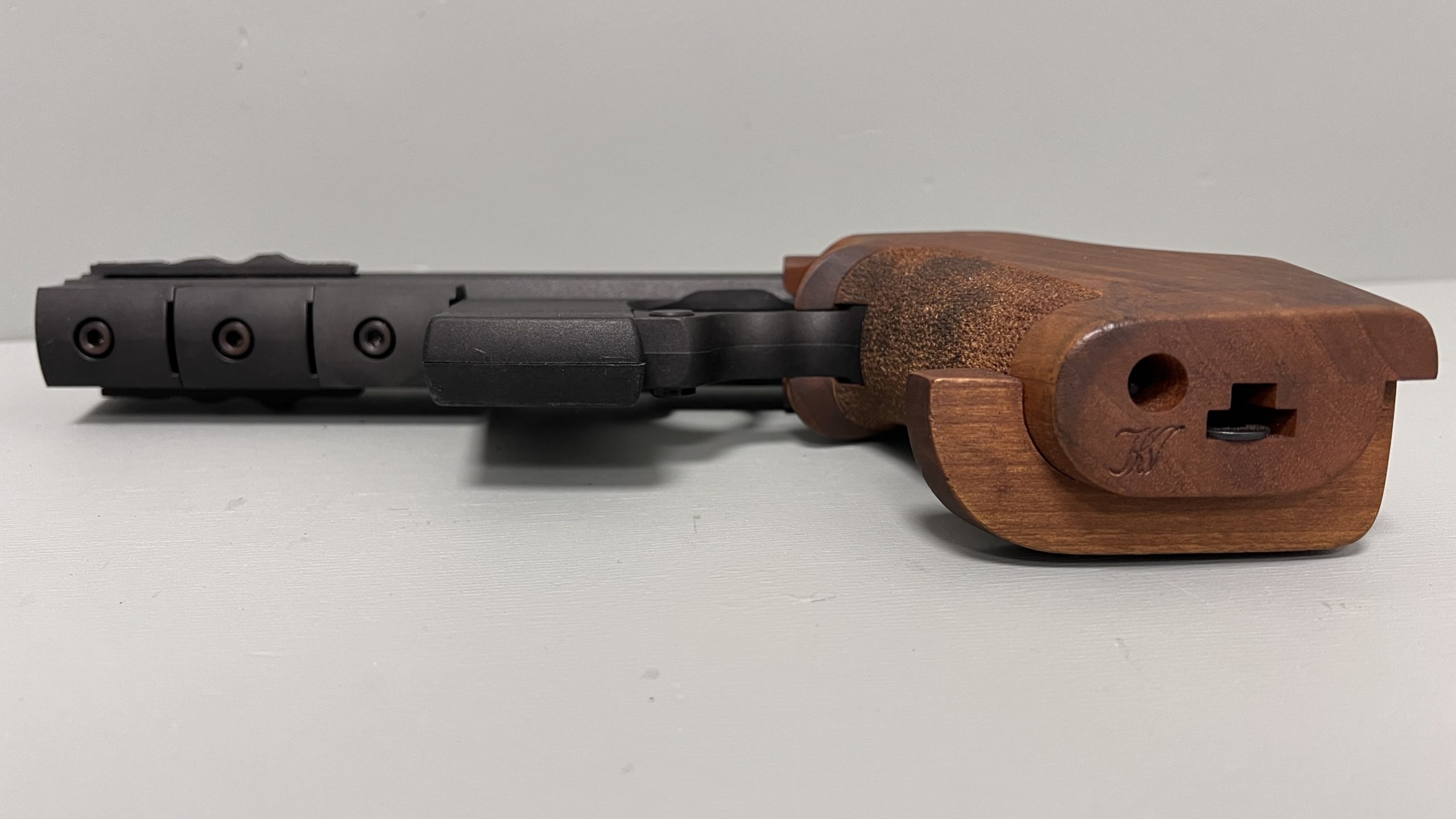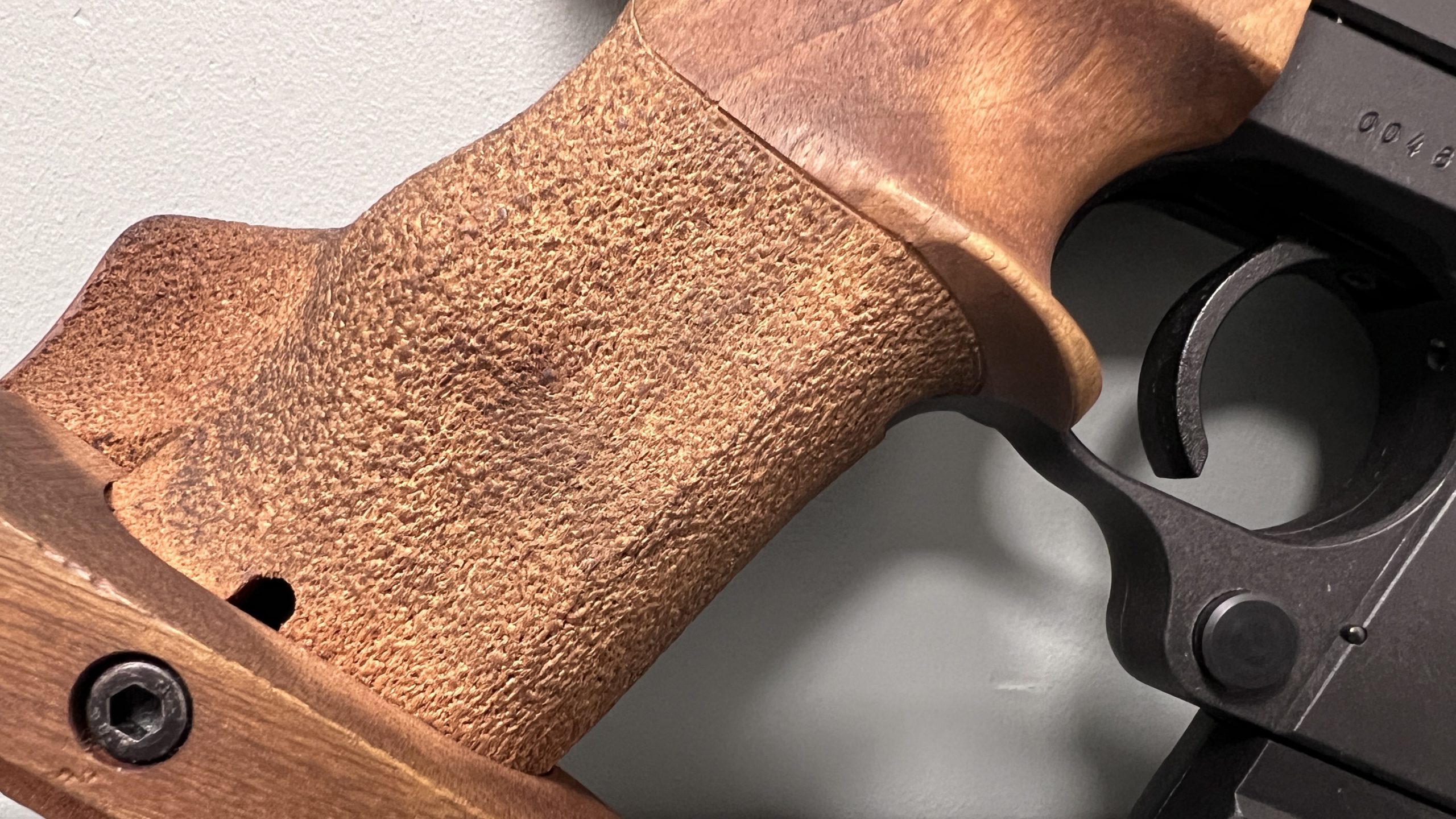 Pistolet w stanie bardzo dobrym/idealnym z anatomiczną rękojeścią. Lufa lustro – jak nowa.