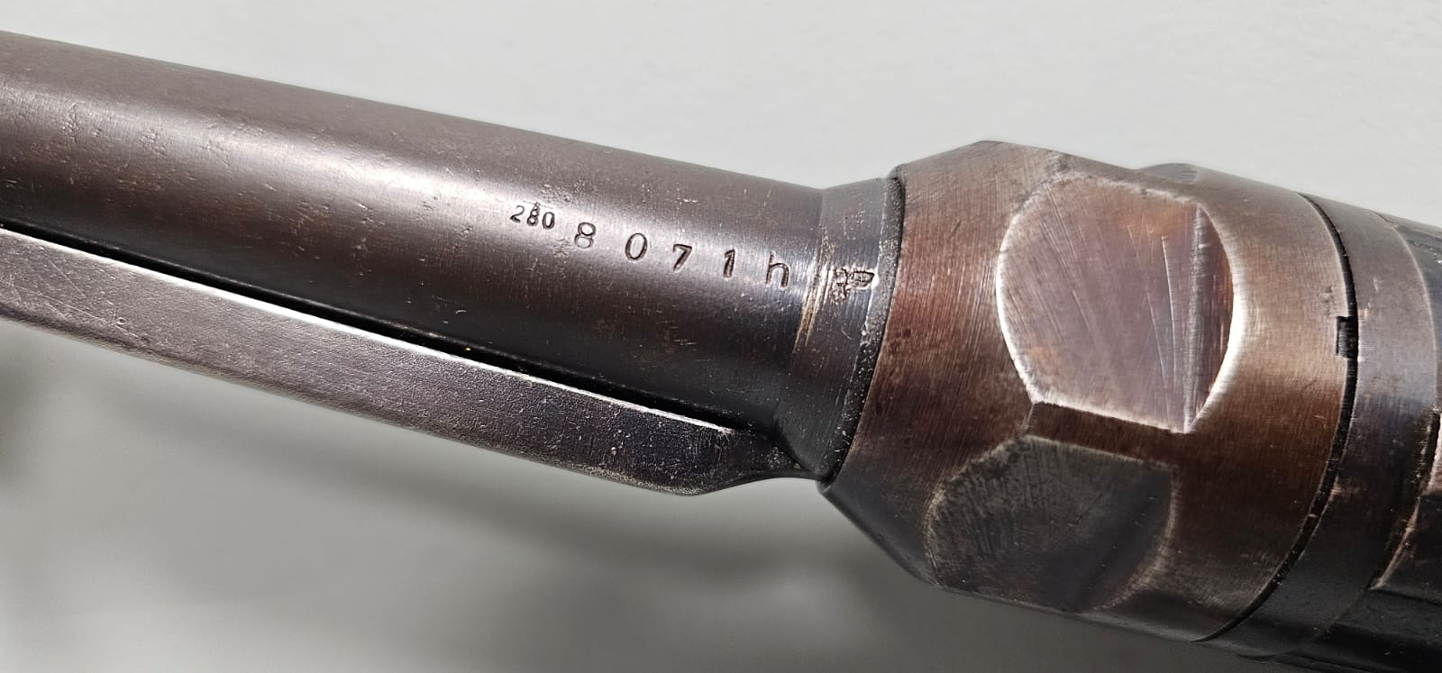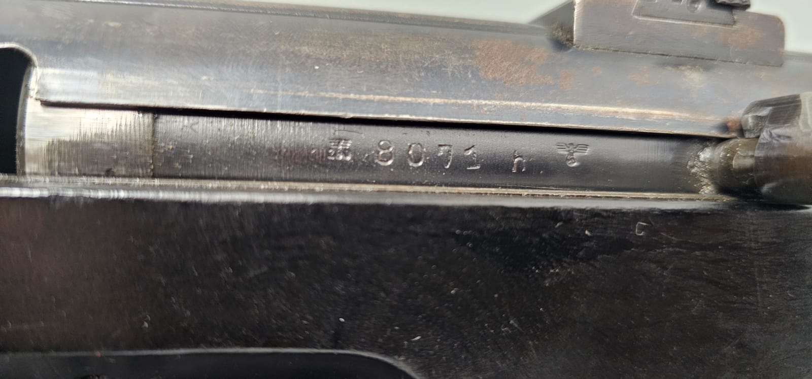 Egzemplarz w pełni zgodny numerycznie, oryginalne pokrycie , lufa lustro, oryginalny pas.
